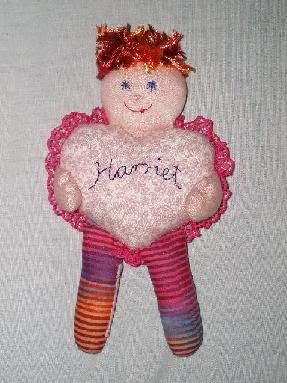 Anyway you can see below the cutest little doll that Sabina made for Harriet. Isn't it cute?! We predict that this is the toy Harriet will insist on dragging behind her everywhere until at age five we are forced to remove the sodden, filthy mess of material that barely resembles a doll anymore away from her. She has already had a good suck of the leg today. Yum!